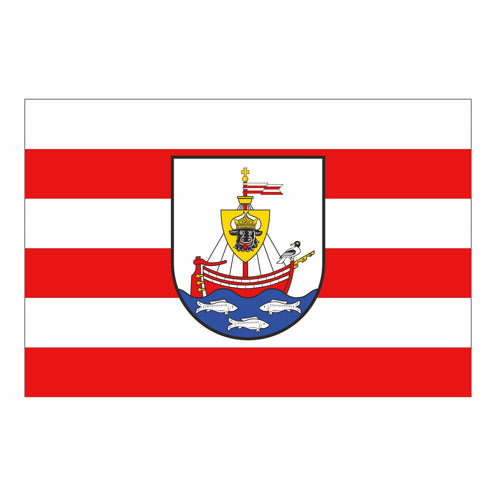 Das Wappen von Wismar, Hansestadt auf Fahne und Flagge