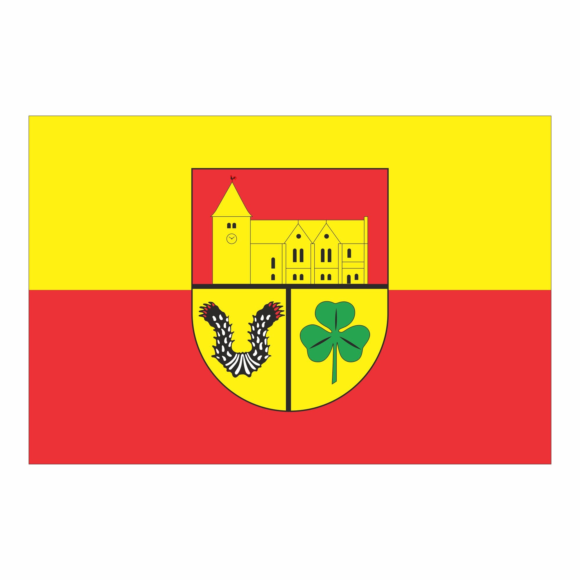 Wichtige Infos zur Bestellung: Bei jeder Bestellung erhalten Sie von uns einen Korrekturabzug mit dem finalen Design der Fahne – erst nach Freigabe durch Sie wird die Fahne gefertigt. Wir haben für viele Gemeinden vektorisierte Druckvorlagen. Wenn diese für Ihre Gemeinde nicht vorliegen, erstellen wir die Druckvorlage kostenlos.